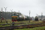 Belaruskaja Czygunka (BCz) M62-1312 with a freight train Siemianowka - Swislocz (Belarus) (and TEM2-030 on the right side) 05.11.2015, Siemianowka Photo W. Kolins |