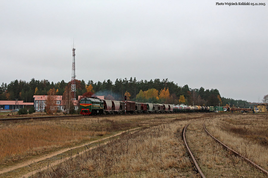 Belaruskaja Czygunka (BCz) M62-1312 with a freight train Siemianowka - Swislocz (Belarus) 05.11.2015, Siemianowka Photo W. Kolins |