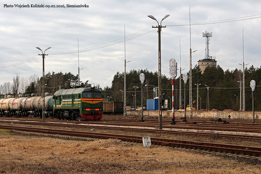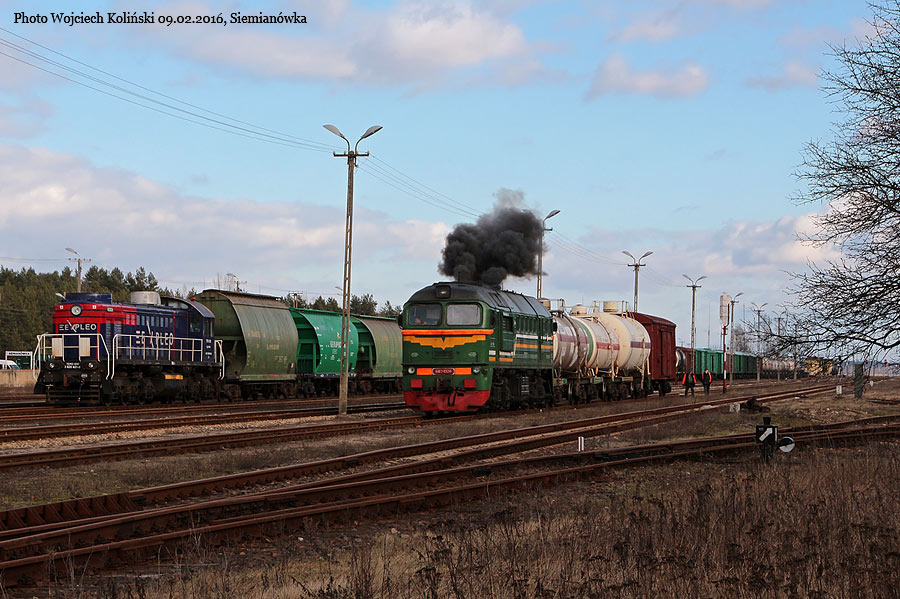 Belaruskaja Czygunka (BCz) M62-1320, maneuvers on the station and TEM2-030 is on the left side 09.02.2016, Siemianowka Photo W. Kolins |