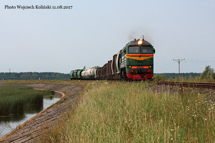 Belaruskaja Czygunka (BCz) M62-1320 with a freight train Swislocz (Belarus) - Siemianowka 11.08.2017, track Cisowka - Siemianowka Photo W. Kolins |