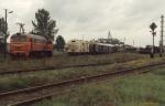 31 Aug. 1993, single M62 locomotive of BCZ (but designed for normal gauge) waiting for local passenger crossborder train Bialystok-Brest,