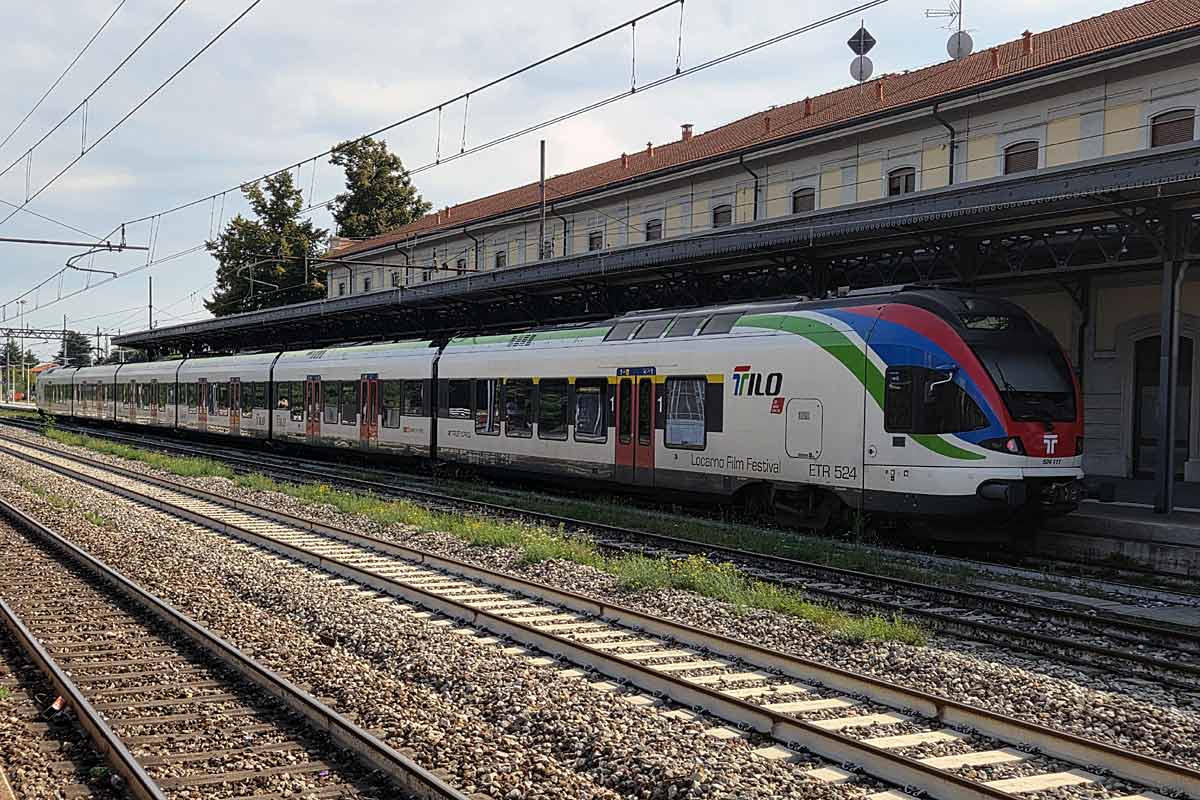 TILO (SBB/Trenord) - Switzerland Trainset RABe (ETR) 524 114 in the new livery arrives at Mendrisio on its way to Milano in Italy. Mendrisio, 03-08-2021 Digital photo by Marco van Uden |