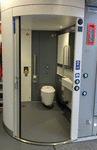 | ABe 6/12 90 85 843 1102-5 "Comino" of Ferrovie Autolinee Regionali Ticinesi. Interior of the wheelchair accessible toilet. InnoTrans, Berlin, september 2024. |