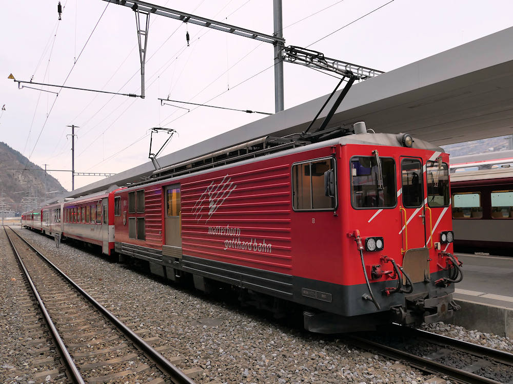 MGB train coming from Visp in Brig station.