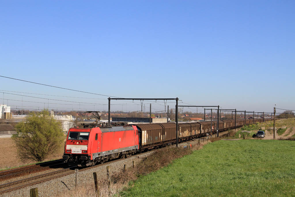HLE 186325 pulling a freight train, is passing in Lauwe (Belgium) on line 75, 20 March 2014