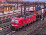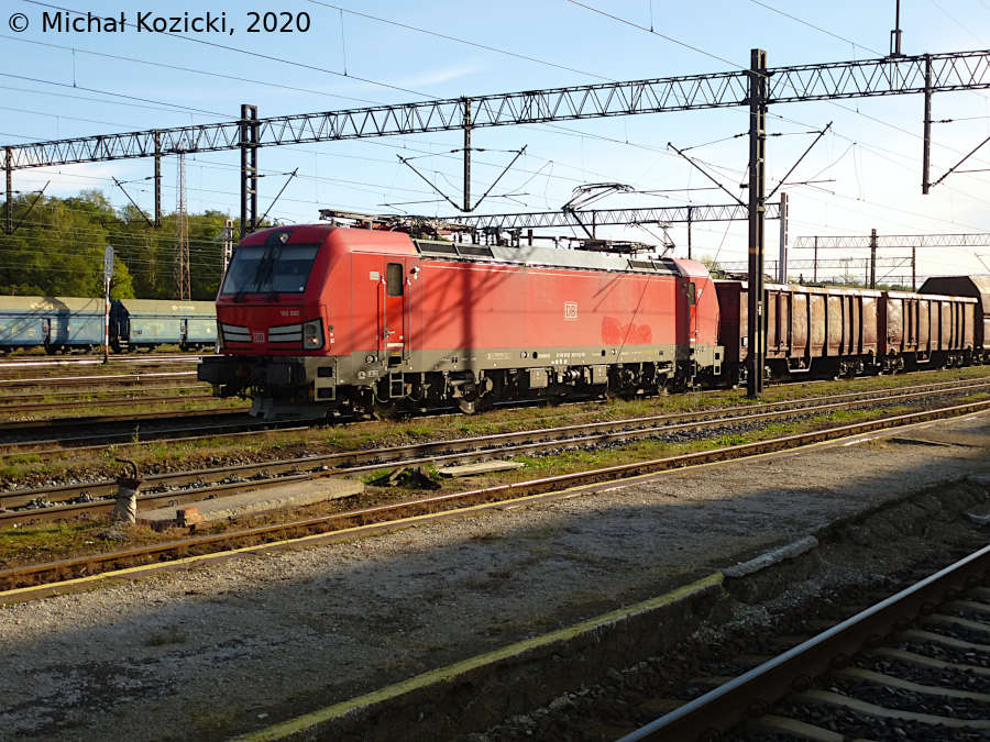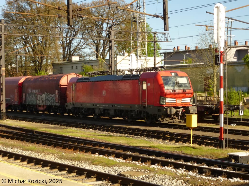 DB Cargo 193 397 with a freight train is seen at station Wegliniec, Poland, 27.04.2024.