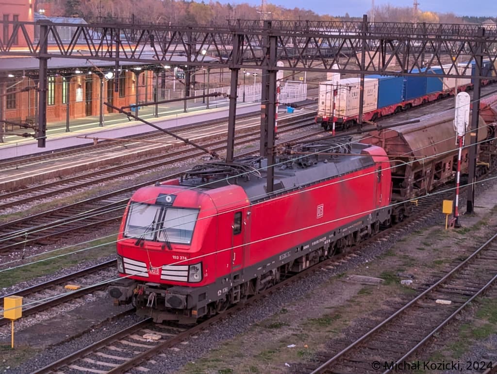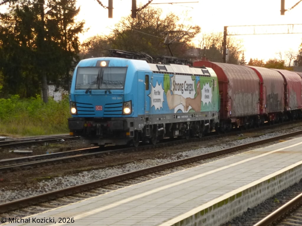 DB Cargo 193 374 with a freight train stands idle in Wegliniec, Poland, 31.10.2024.
