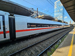A high speed EMU ICE of DB ("Deutsche Bahn / German Railways") at railway station Bruxelles Midi, using an international train with number ICE19 to Frankfurt Main.