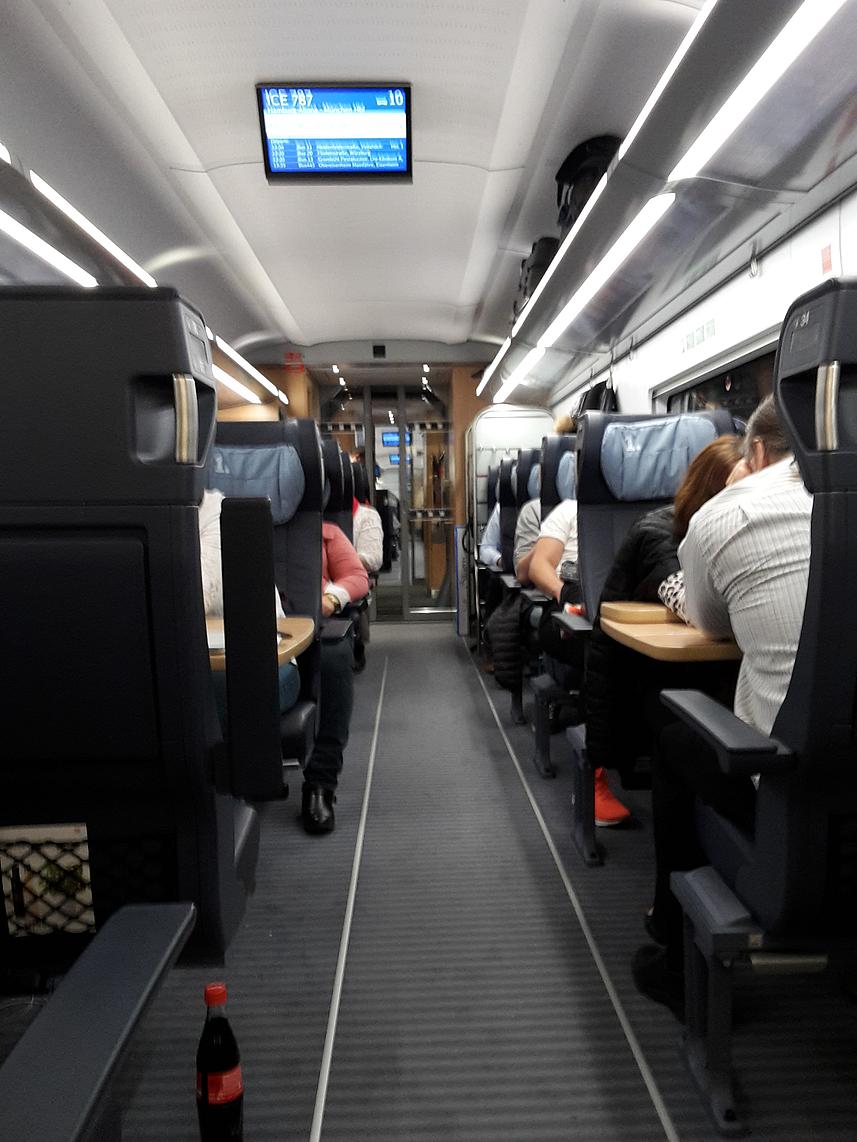 | New trainset 9006 of class 412/812 operating as ICE 787 (Hamburg Altona to München Hbf). Interior of second class. 2016-11-24. |