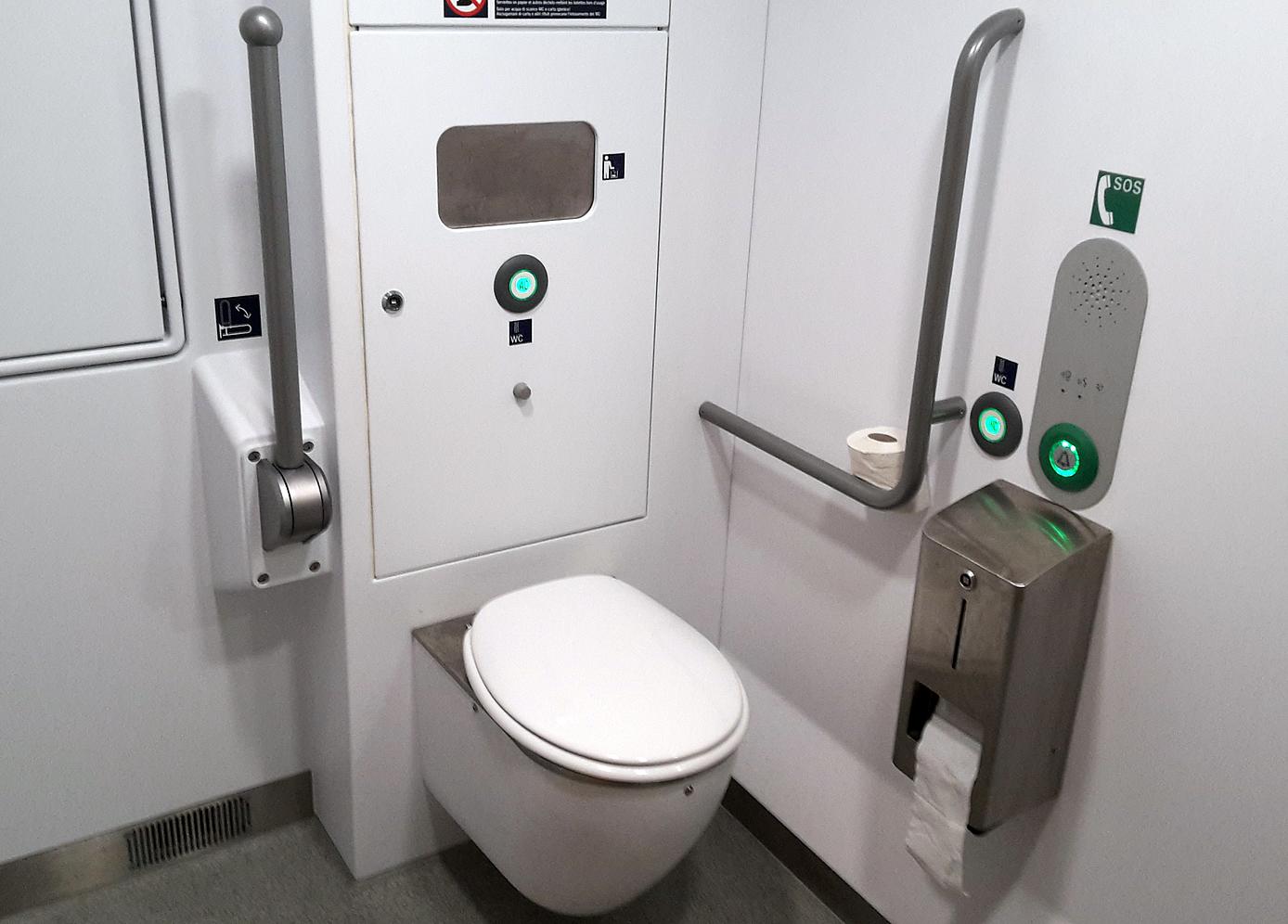 | New trainset 9006 of class 412/812 operating as ICE 787 (Hamburg Altona to München Hbf). Interior of a wheelchair accessible toilet room. 2016-11-24. |