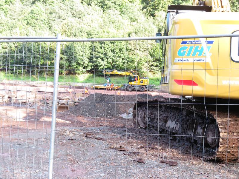 DB Strecke Saarbrücken-Schafbrücke -- Scheidt(Saar). September 2025. Blick über das unbebaute Grundstück mit Bagger. Photo by M.Koblischka |