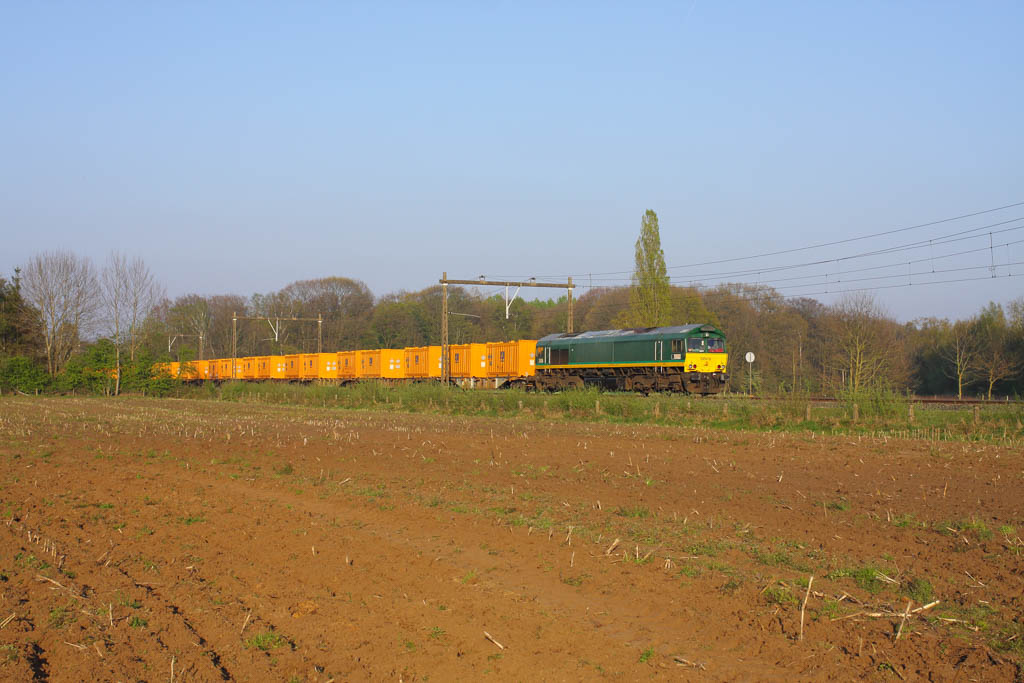 Rhein Cargo DE676 with Bauer containers (filled with contaminated soil) from Basel to Veendam. Hengelo Oost, Sunday 9th April 2017. Photo © Rogier Peeters (rogierpeeters@gmail.com) |