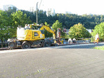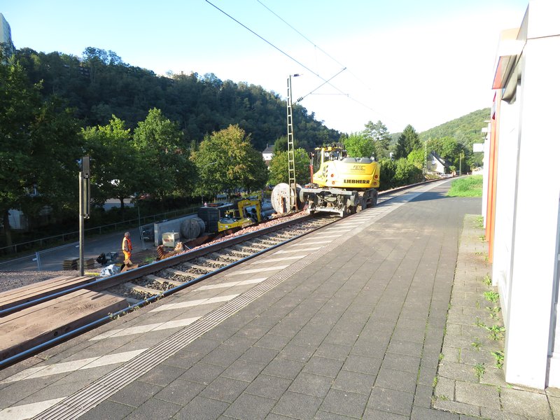 DB Bahnhof Saarbrücken-Schafbrücke. September 2025. Auf der Strassenseite wurde extra ein Podest für die Zwei-Wege-Bagger angelegt und die Lärmschutzwand offen gelassen. Photo by M.Koblischka |
