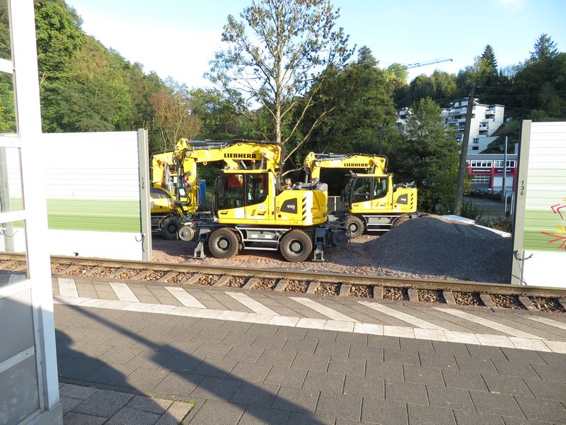 DB Bahnhof Saarbrücken-Schafbrücke. September 2025. Zwei-Wege-Bagger im Einsatz. Blick Richtung Eschberg. Photo by M.Koblischka |