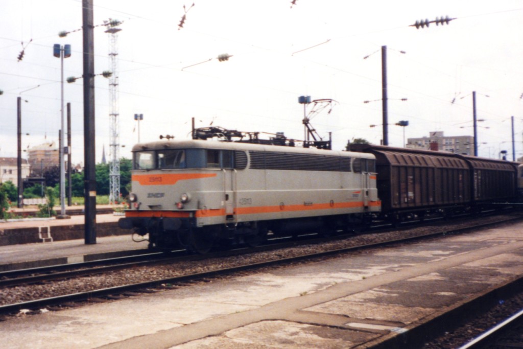 Une 25000 bicourante en gare de Chalons (Marne) avec un train de fret, août 2002