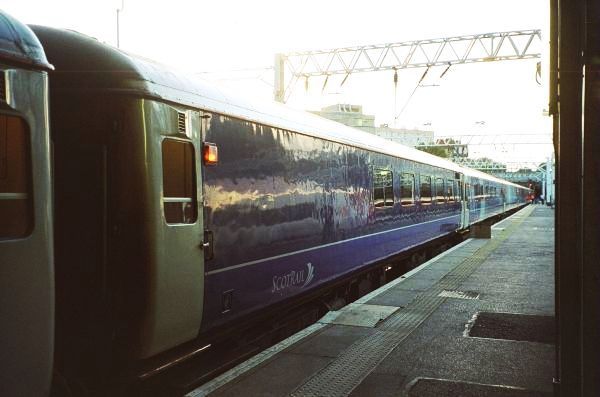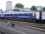 Mk3 Sleeping-car of First Scotrail, recently re-liveried to the corporate identity of the First Group.