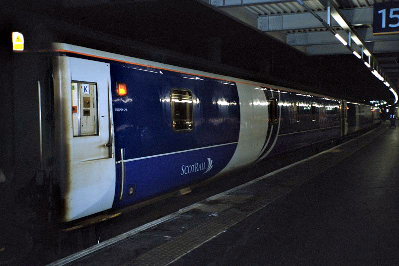 Mk3 Sleeping-car (corridor-side) of Scotrail, seen awaiting departure on the Caledonian Sleeper to Aberdeen/Inverness/Fort William.
