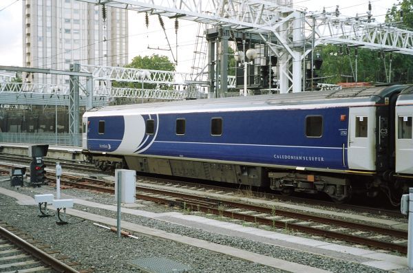 Whereas it has recently been re-liveried to the corporate identity of the First Group, the "Caledonian Sleepers" brand has remained. London-Euston. 4th August 2006.