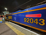 EWS Class 92 On Mon 28th May 2007, Pathfinder Tours ran the 'Retro Retracer' railtour from Bristol to Leeds & return featuring classes of locomotives that played an important role in the development of freight by rail during the days of British Rail. For the 1Z92 18:12 Crewe - Birmingam New Street leg of the tour, EWS supplied Class 92 - 92030 'Ashford', which is pictured at Crewe at 17:50 as it backs onto the railtour stock.