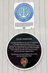 | GB_17_Day_6_Tain_station_plaques. Tain railway station has been preserved in excellent condition, with input from the local community. Two wall-mounted plaques tell of the stations Listed status and restoration and also relates the story of the Jellicoe Express. That was the name bestowed upon the many special trains which ran through Tain in both World Wars, transporting Royal Naval crews to and from Scottish naval bases, predominantly the Home Fleet anchorage at Scapa Flow, in the Orkney Islands. 1st May 2025. roger.griffiths@hotmail.com |