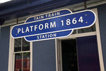 | GB_17_Day_6_Tain_station_1864_sign. Part of the local inclusion in the preservation of Tain station is the adaptation of the main building for a restaurant: Platform 1864. The sign for the restaurant continues the BR Scottish Regional blue colour scheme, but it is a pity that the American-influenced appellation Train Station has been used, instead of the correct Railway Station. 1st May 2025. roger.griffiths@hotmail.com |