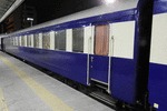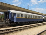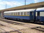 A sleeping car of MAV (Magyar Allam Vasutak / Hungarian Railways) type "WLS" with number 56 55 89 69 052 - 0 at central railway station Sofia in composition of an attraction train.