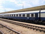 A retro Hungarian car type "WLmee" standing at central railway station Plovdiv in composition of special tran "Golden Eagle Danube Express" from Venice to Istanbul.