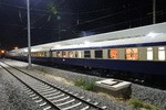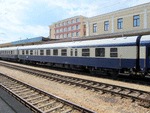 A retro Hungarian car at central railway station Plovdiv in composition of special train "Golden Eagle Danube Express" from Paris to Istanbul.