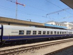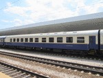 This month in Bulgaria there is a carry out an attraction trip of group hungarian tourists with retro style sleeping cars , restaurants , generator and salon car.The compositon includes carriages of type "Nostalgia" train and onto the destination plates there are an inscriptions "Golden Eagle Danube Express".On these pictures you can see some of different types of cars.