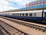 A retro Hungarian car with number 56 55 88 81 004 - 6, type "WRm" at central railway station Sofia in composition of special train "Golden Eagle Danube Express - Balkan Explorer" from Venice to Istanbul.A video about departuring the train from central railway station Sofia, you can see here: