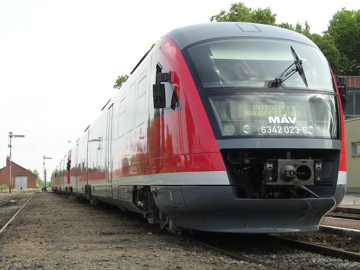 MÁV's Sugovica IC at Baja on 19.05.2007, which only runs at Sunday afternoons from September to June. Originally the train consisted of 2 DMUs, but the very high number of passengers required a third DMU.