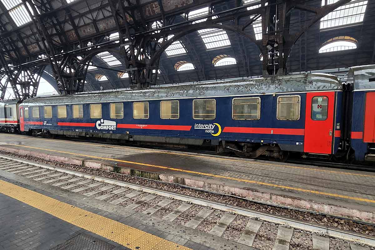 Trenitalia IC Notte Comfort Couchette Car type UIC-X Bc NVR 61 83 59-90 133-6 I-TI at Milano Centrale Station. 04/02/2026.