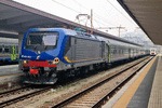 An electric locomotive of FS (Ferrovie dello Stato / Italian Railways) with number 464.305 at railway station Venezia Santa Lucia with RV3614 to Trieste Centrale.