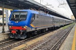 Trenitalia / DPR Veneto single cab electric loco E.464-604 (NVR nr. 91 83 2464 604 I-TI) with a consist of double deck Vivalto coaches in a foggy morning at Venezia Mestre station. 06/02/2024.
