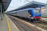 Trenitalia DPR Veneto single cab Electric loco E.464-662 (NVR Nr. 91 83 2464 662-2 I-TI) in DPR color scheme with a consist of MDVE Coaches ready to operate regional servic eto Brennero from Bologna Centrale Station. 27/03/2025.