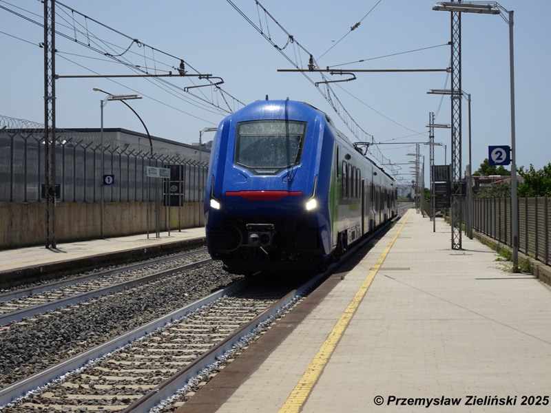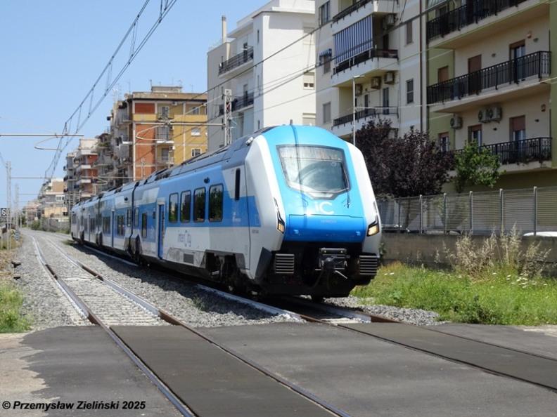 Trenitalia - Italy Brand new dual-mode trainset HTR.412-040 has reached Gorizia from Venezia in electric mode. It will now change to diesel mode and continue to Nova Goriza in Slovenia over the normally freight-only border crossing. Gorizia, 19-04-2025 Photo by Marco van Uden |