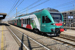 TPER (TPER/Trenitalia DPR Emilia Romagna) EMU-5 ETR.350-113 operating local service Ferrara to Bologna stops on track 02 at San Giorgio di Piano BO Station in its special GP SAN MARINO RIVIERA DI RIMINI Colors. 10/06/2025.