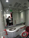 A toilet in a high speed EMU Italo ETR 675 of FS (Ferrovie dello Stato / Italian Railways) at railway station Venezia Santa Lucia, using a train with number 9744 to Brescia.