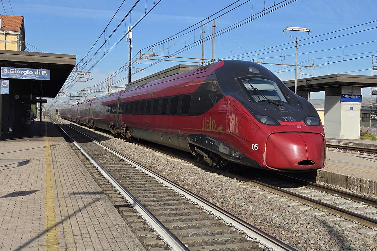 Italo / NTV Nuovo Trasporto Viaggiatori EMU-7 ETR.675-08 at San Giorgiodi Piano BO station on 17/03/2023.