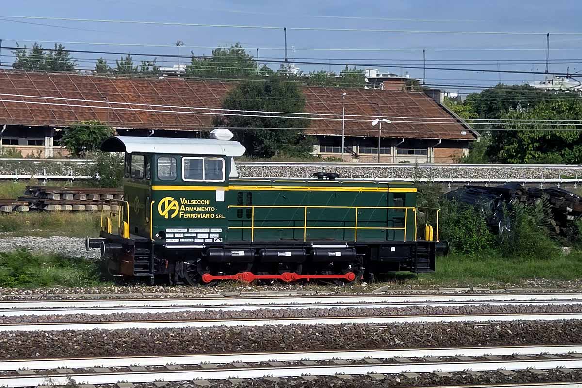 Valsecchi Armamento Ferroviario s.r.l., railway infrastructure work company, diesel loco D235 stabled along the line close to Mialno Centrale station. The loco should be ex FS d.235-3009. 16/09/2025