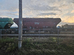 A freight car, owned by LDZ (Latvijas DZelzcels / Latvian Railways) at railway station Janavarti in composition of freight train.
