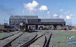 | The Southern Railway MG half-roundhouse at Mayuram Junction was surrounded by a large field bearing the ashes of many years' burning of coal. Note that apart from locomotives, the depot building was also sheltering a red-painted breakdown crane; 30.11.1979. Roger Griffiths roger.griffiths@hotmail.com |