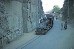 | India_Ghoshipur_cutting_T663 The Gwalior Light Railway, later the Scindia State Railway, opened in 1899 and gradually expanded, until three separate lines radiated from Gwalior, to Bhind, Sheopur Kalan and Shivpuri. At its total maximum length of 250 miles it was the world’s longest 2ft gauge system and in December 1979 remained entirely steam worked, as part of the Central Railway. Eventually diesel locomotives took over until the last section, to Sheopur Kalan, closed in 2010. Broad gauge, electrified lines now serve Gwalior, Bhind and Shivpuri, while the Shepur Kalan line is reportedly undergoing gauge conversion. The Central Railway's NG (2ft) line from Gwalior to Sabalghar passes through a deep rock cutting, with the road, at the town of Ghoshipur. Hauling T663 Gwalior - Sabalgarh mixed 4-6-2 NM 765 (WB 2460/1931) passes through the cutting; 10.12.1979. Roger Griffiths roger.griffiths@hotmail.com |