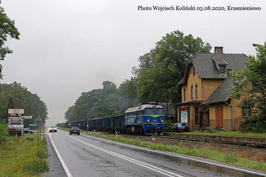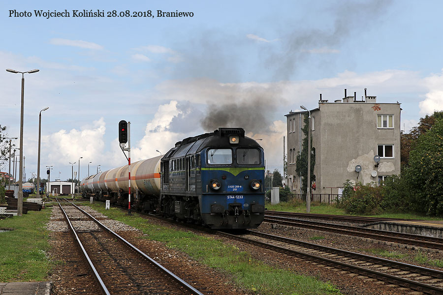 PKP Cargo ST44-1233 with the freight train from Braniewo 28.08.2018, Braniewo Photo W. Kolins |