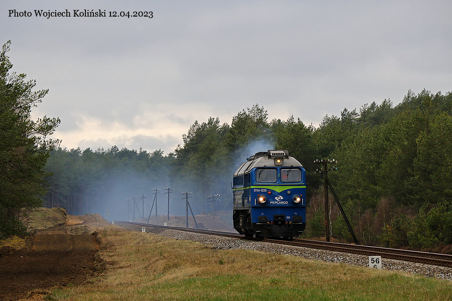 PKP Cargo ST44-1233 with the freight to Lipusz 12.04.2023, track Koscierzyna - Garczyn Photo W. Kolins |