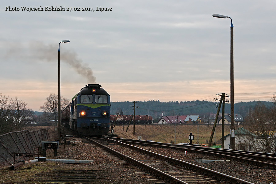PKP Cargo ST44-1234 with the freight train Gdynia Port - Lipusz (SM42-1289 at the end) 27.02.2017, Lipusz Photo W. Kolins |