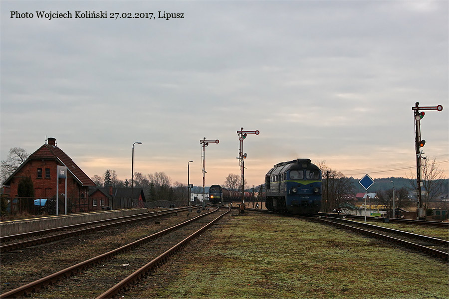 PKP Cargo ST44-1234 + SM42-1289 with the freight train Lipusz - Gdynia Port 27.02.2017, Lipusz Photo W. Kolins |