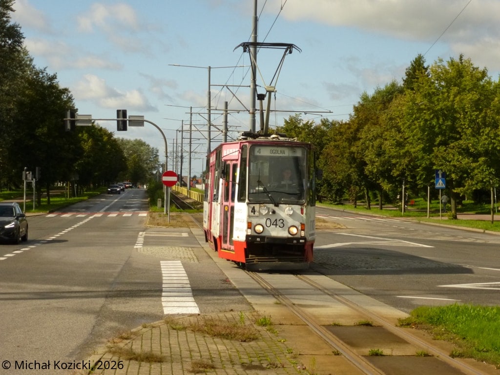 Konstal 805Na No. 043 on route 4 just before arriving at the Ogolna end loop, Elblag, Poland, 17.09.2025.