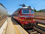 44185 at railway station Dimitrovgrad central wurh fast train with number 8651 from Sofia to Varna via Plovdiv.