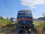 A private electric locomotive with number 91 52 00 87 017 - 7, owned by private operator BRC ("Bulgarian Railway Company") at railway station Iliyantsi, after pulling a freight train.